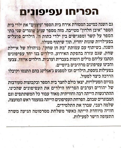 כתבה בעיתון המקומי של תל מונד ”שבשבת”